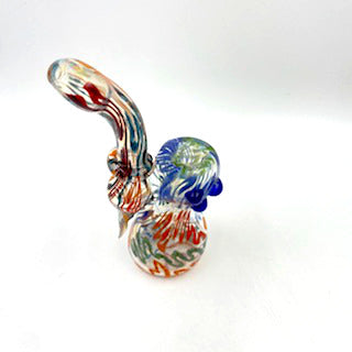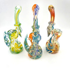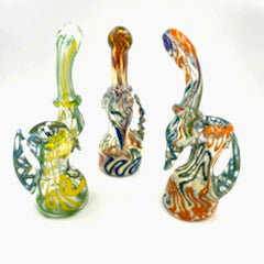 Standing strong for decades Sherlock Bubblers are here to stay. Individual color line work drawn inside the clear glass and the three-dimensional depth you get with our Inside-Out Pipes. 6" tall with thick walls. Downstem is fully submerged with an adequately sized Carb for a full clear hit. Larger Gripper Dots and Shapley design will help you hold on to these heavy hitters without letting go of your Cash!